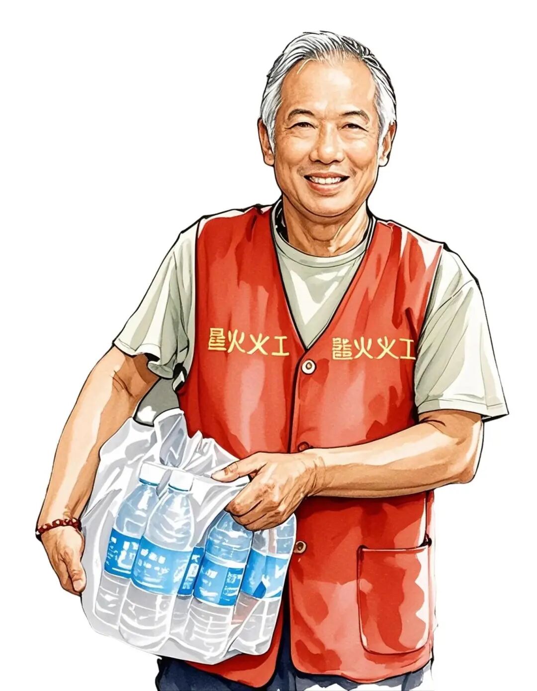 这样的对话,在坝子街桥头每天都要上演许多遍。老人叫王伟,今年57 岁,是市慈善总会的一名十星级义工,也星火慈善义工服务中心的志愿者。从入夏至初秋,他天天守着这台装满矿泉水的冰箱,给环卫工、外卖员、快递员们递上一瓶瓶清凉。
